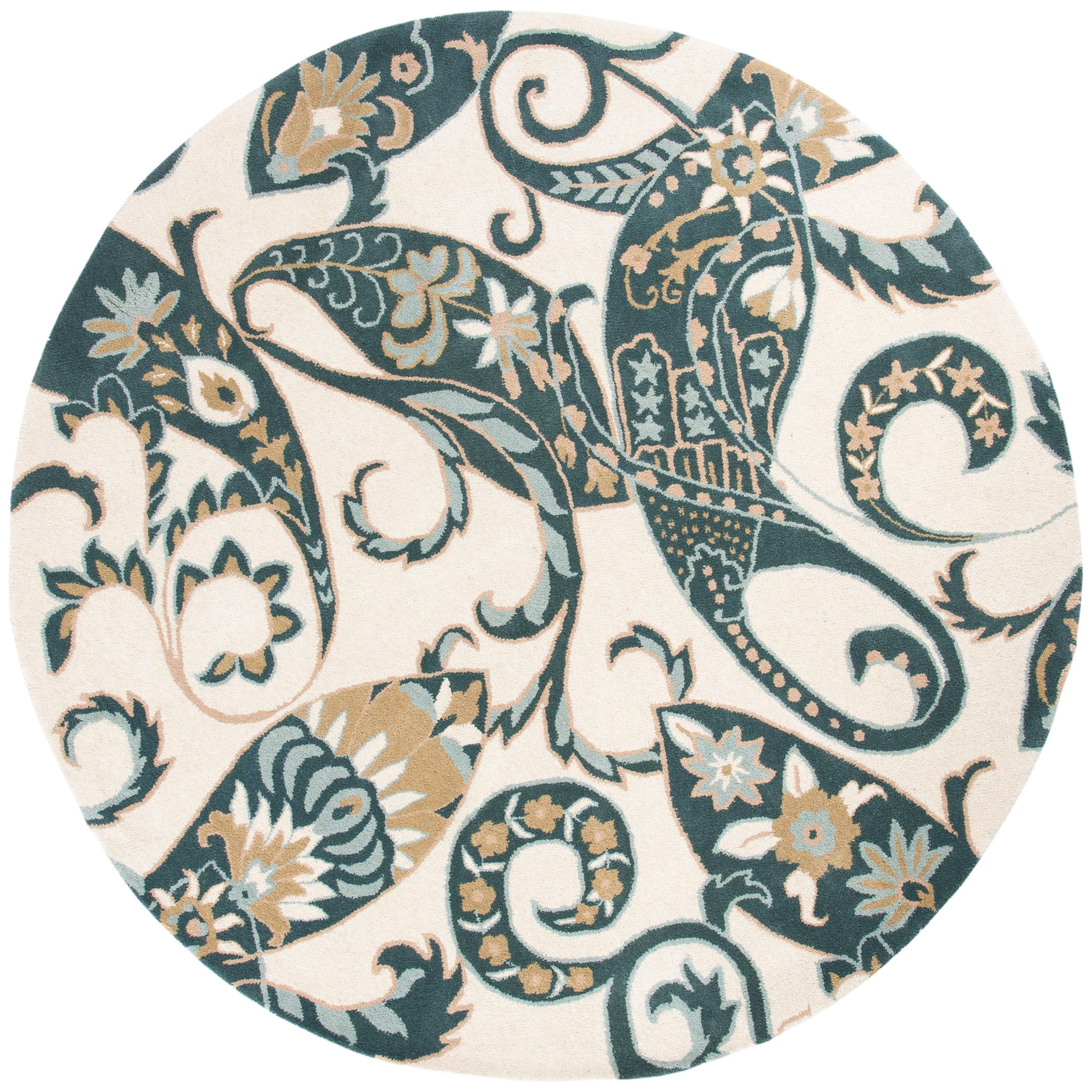 Wyndham WYD377C from SAFAVIEH's exquisite collection, showcasing a stunning array of designs from contemporary florals to traditional global motifs. Crafted by skilled artisans, each rug boasts vibrant hues and is hand-tufted using premium wool for exceptional quality. With a thickness of approximately 0.5 inches, this rug adds both style and comfort to any space.